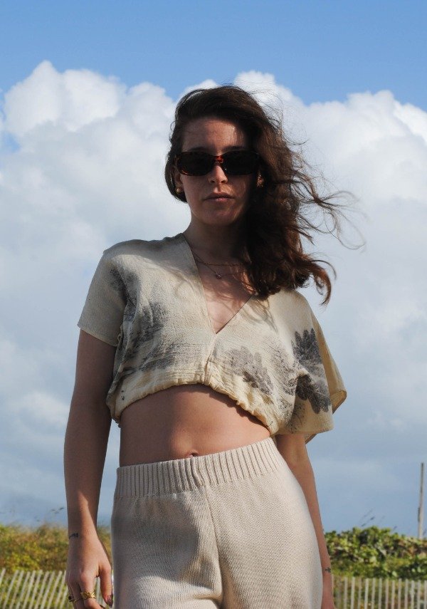 Cada estampa nace del contacto directo entre la planta y el textil. Por lo que, suelen parecerse, ninguna pieza es exactamente igual a otra.