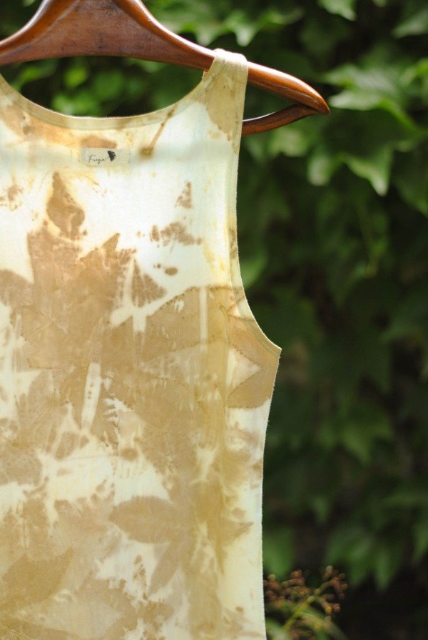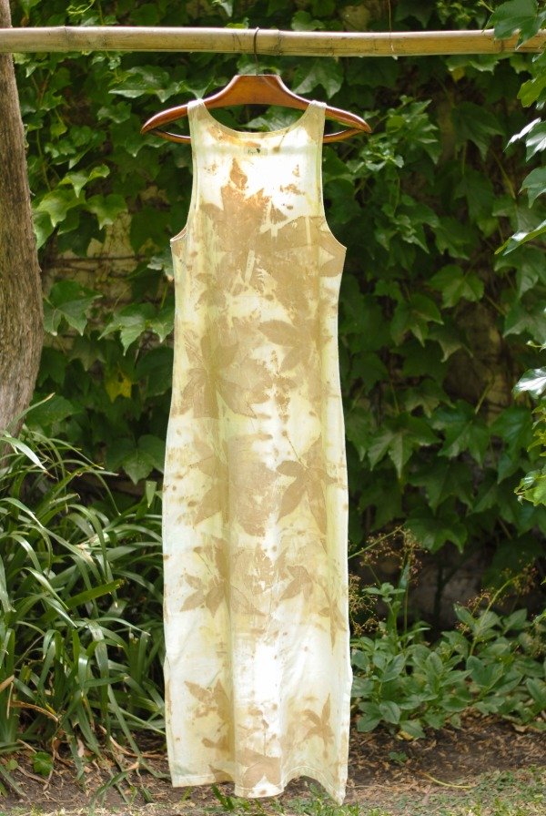 Vestido largo musculosa de algodón con impresión botánica de hojas de liquidámbar.